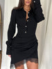 Lace Detail Button Front Long Sleeve Dress