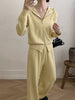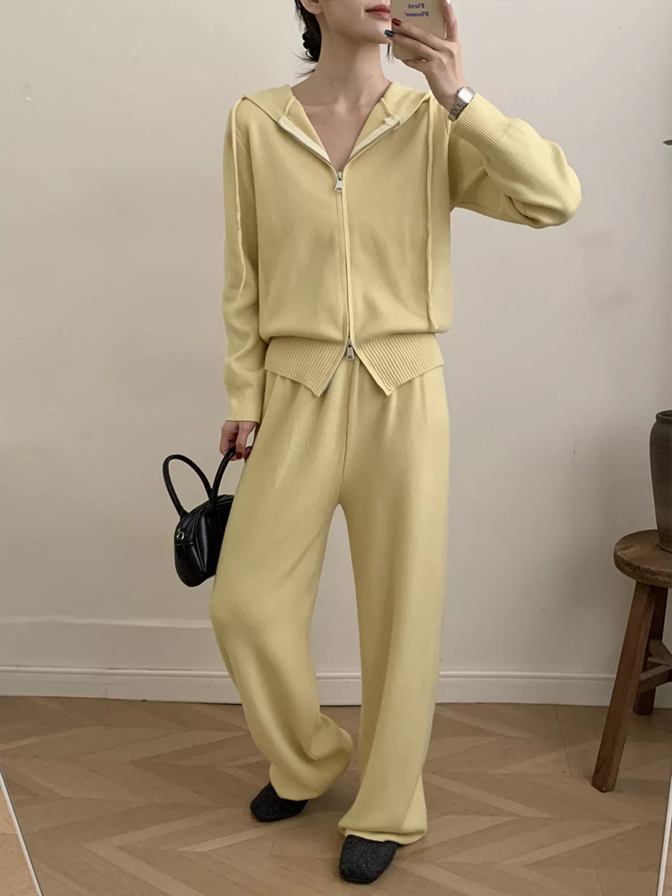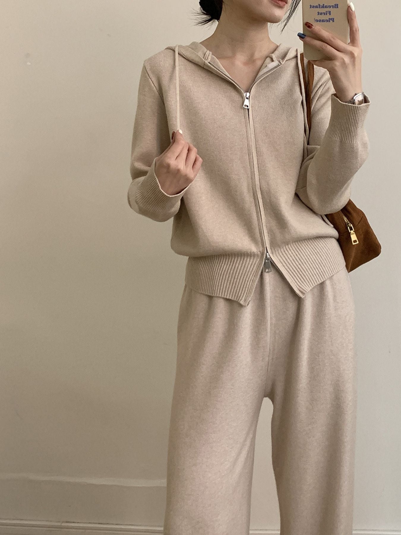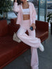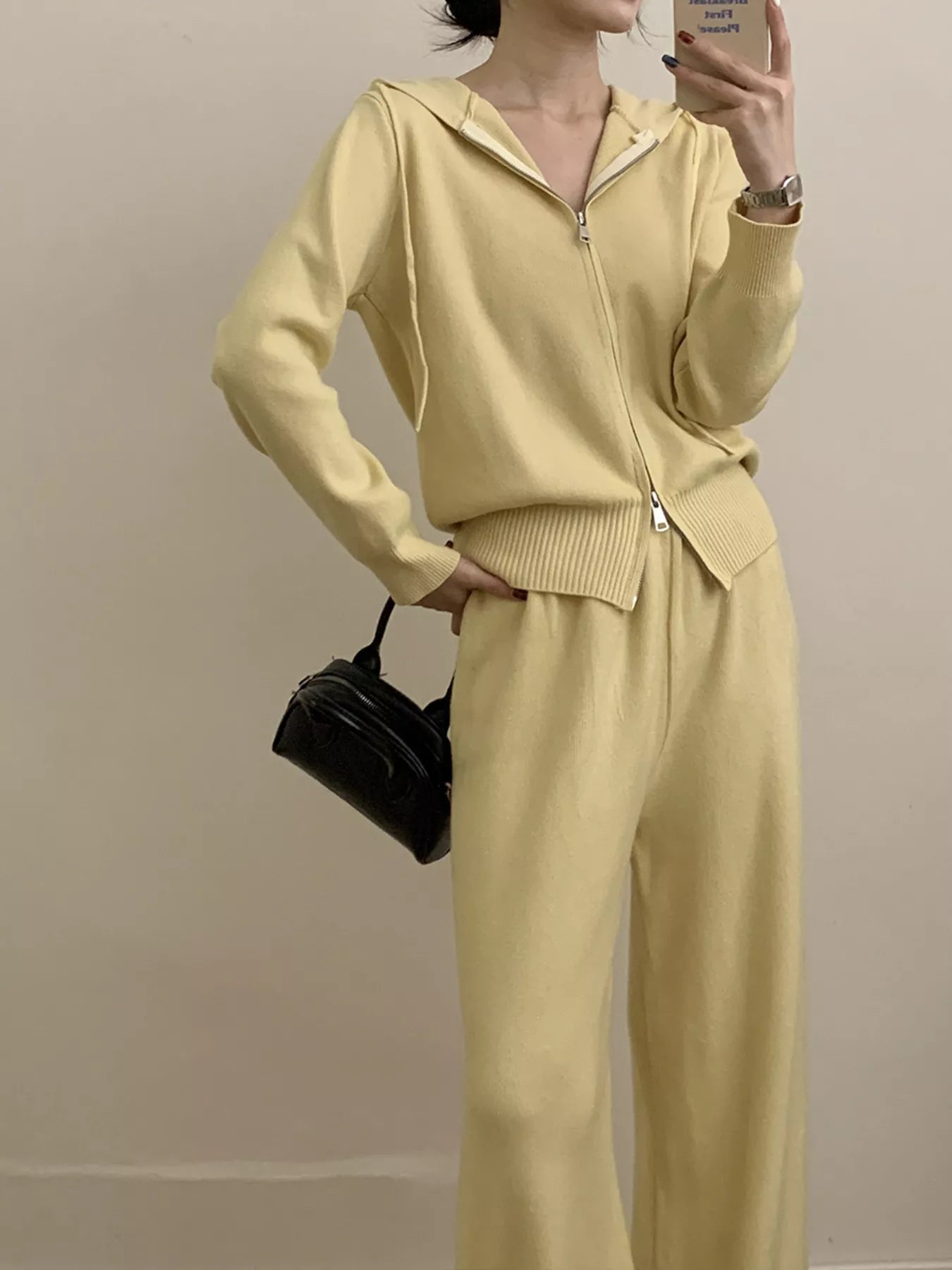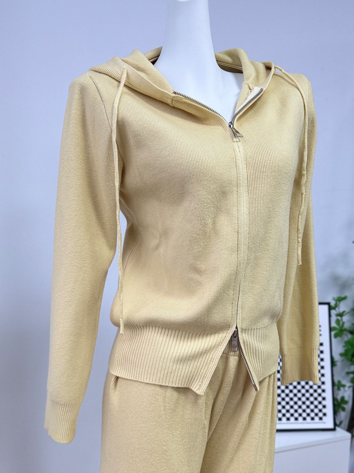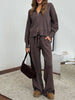 Zip Up Cardigan and Drawstring Wide Leg Pants Knit Set